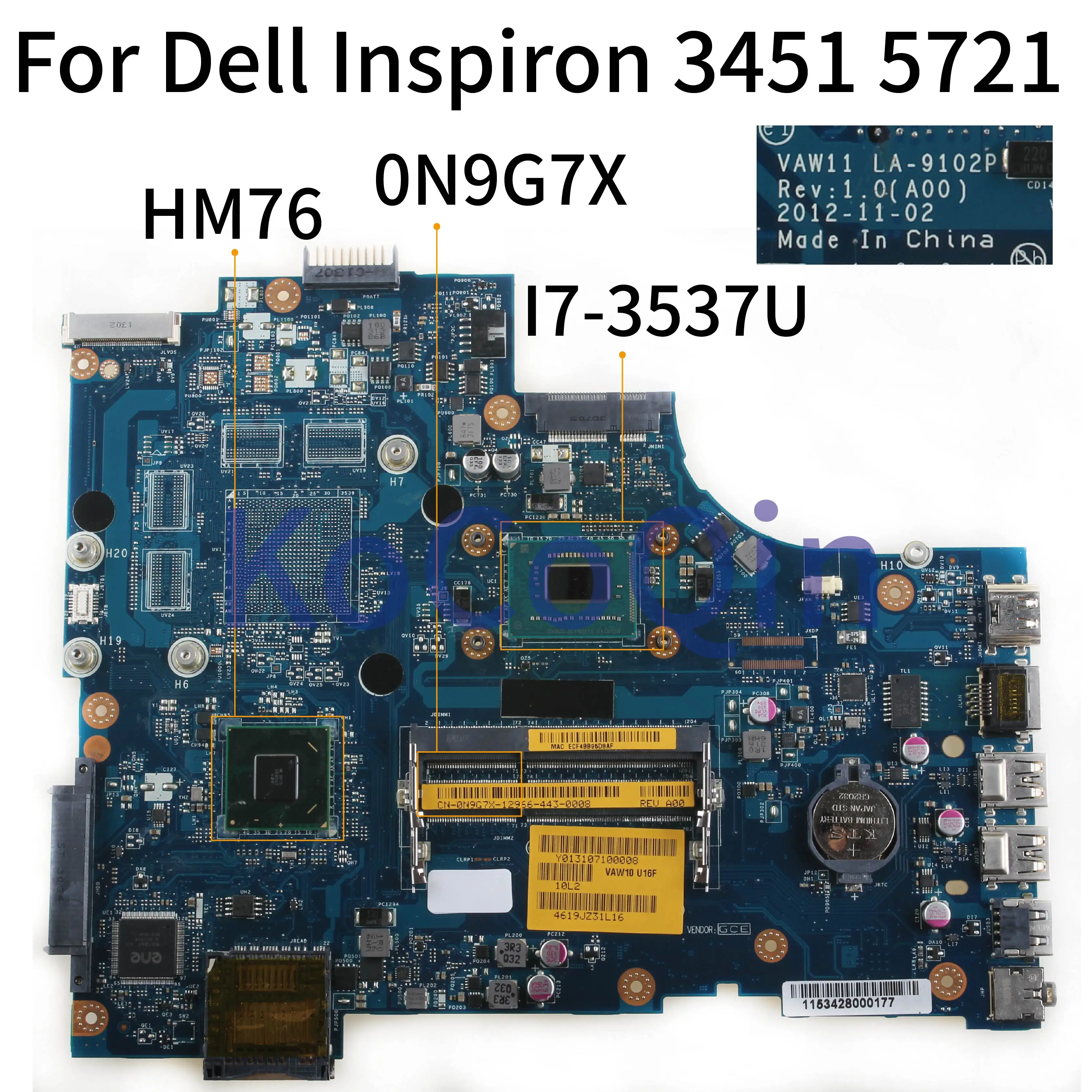 buy KoCoQin Laptop motherboard For Dell Inspiron 17R 3721 5721 I7-3537U Mainboard CN-0N9G7X 0N9G7X VAW1
