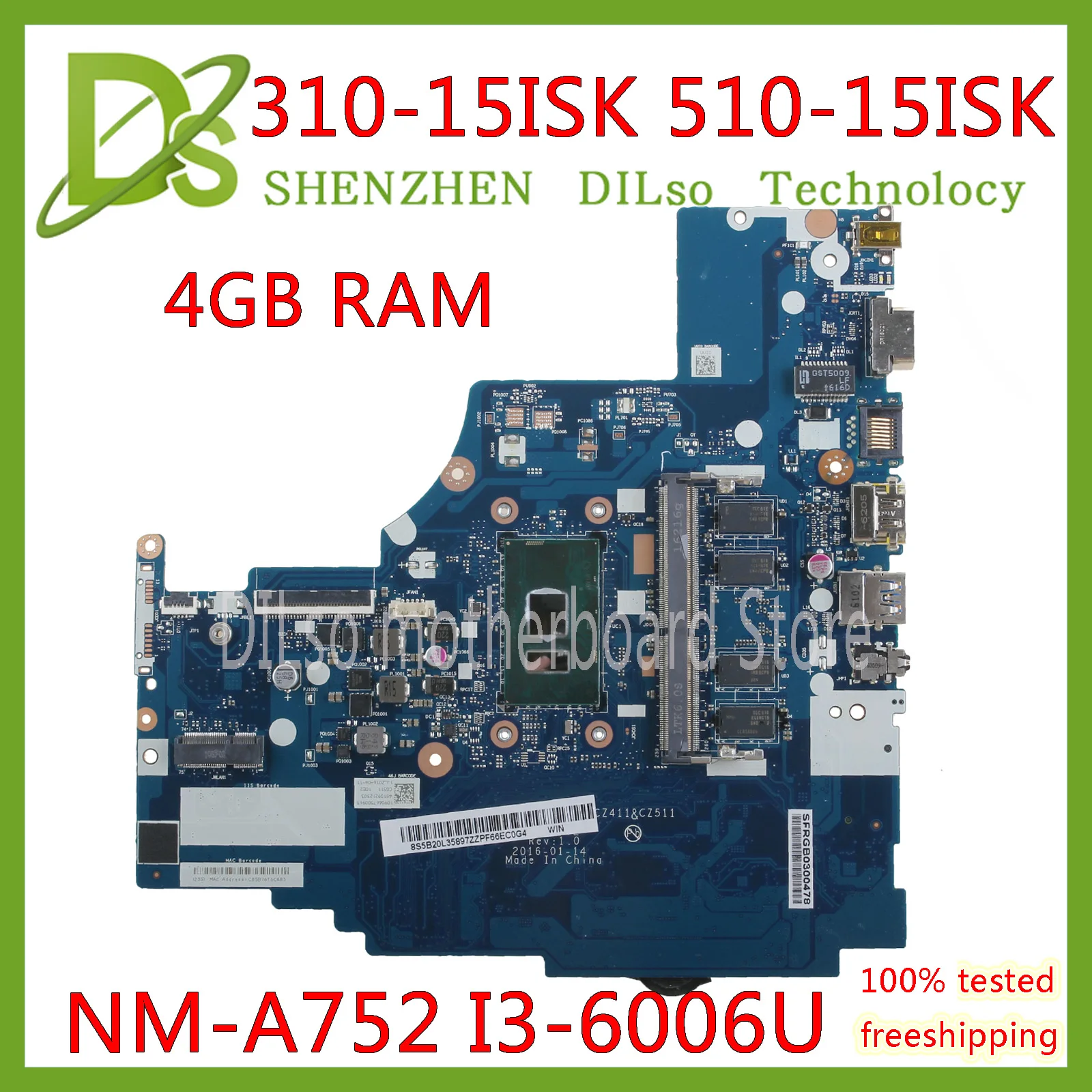 Very best KEFU NM-A752 motherboard for Lenovo 310-15ISK 510-15ISK laptop motherboard For I3-6100U/I3-6006U 4G